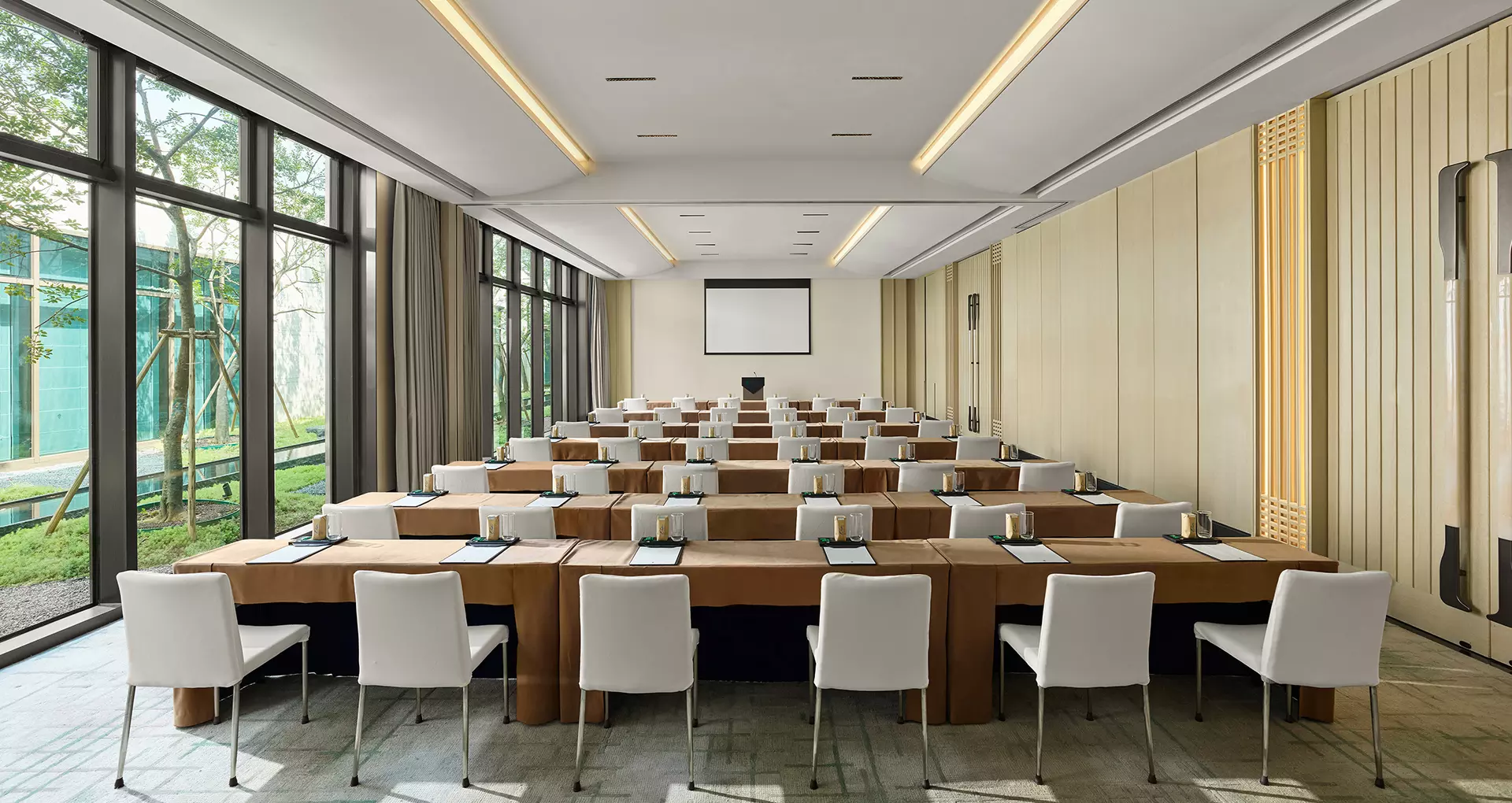 悦柳设有多种不同规格的多功能会议室,布局灵活,配备齐全的现代科技设备、多媒体系统和高速网络服务,可满足会议、活动、婚礼、宴会等各类场合需求。