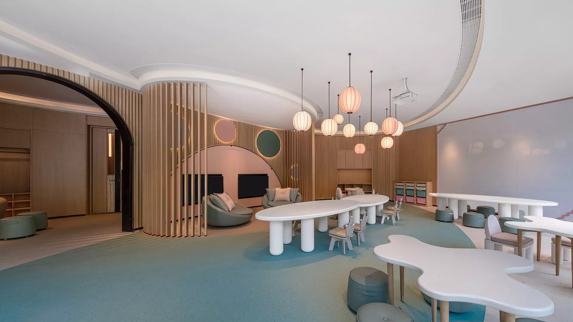 儿童俱乐部位于酒店1F,专为小冒险家设计的莫兰迪色游戏互动区,弧面设计兼顾安全与趣味,孩子可畅享多样游艺项目。